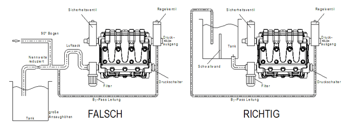 Es ist ratsam die Pumpe durch einen Filter in der Ansaugleitung vor unzulässige Schmutzfrachten zu schützen. Jedoch müssen folgende Bedingungen berücksichtigt werden.